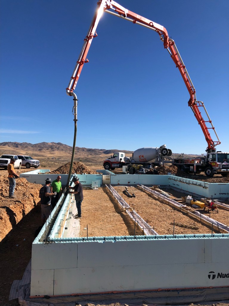 On Monday, the concrete truck came out and poured our stem walls. This means our foundation is done and we (by we, I mean our subcontractor) can start assembling our main exterior walls. The footings and stem forms went up pretty quick, but these forms will go up a little slower due to measuring and cutting out spaces for windows and doors.