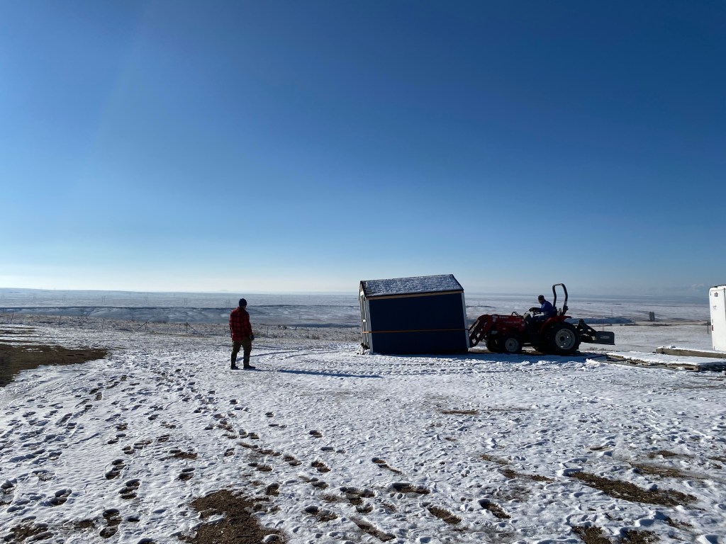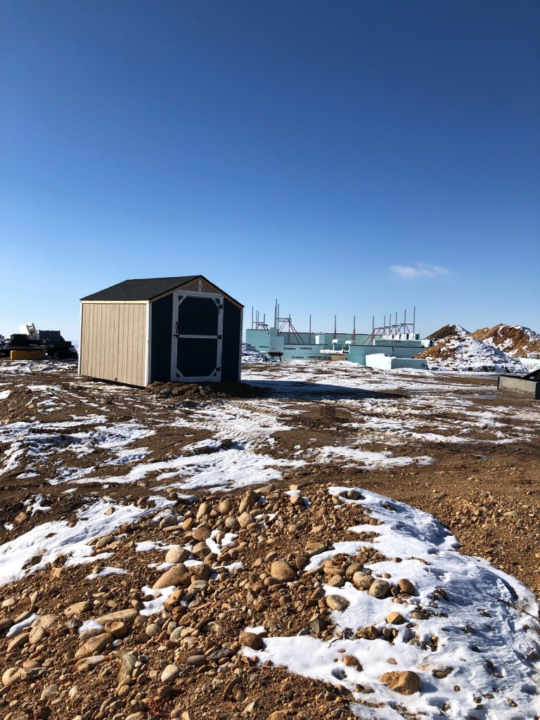 I mentioned that it’s cold. Due to the house being, well, open and not dried in — Keith and my dad moved our (half painted) shed we bought earlier this year. The plan is to store tools and supplies, but to also have a small propane heater in there so whoever is working on the house can go warm up.