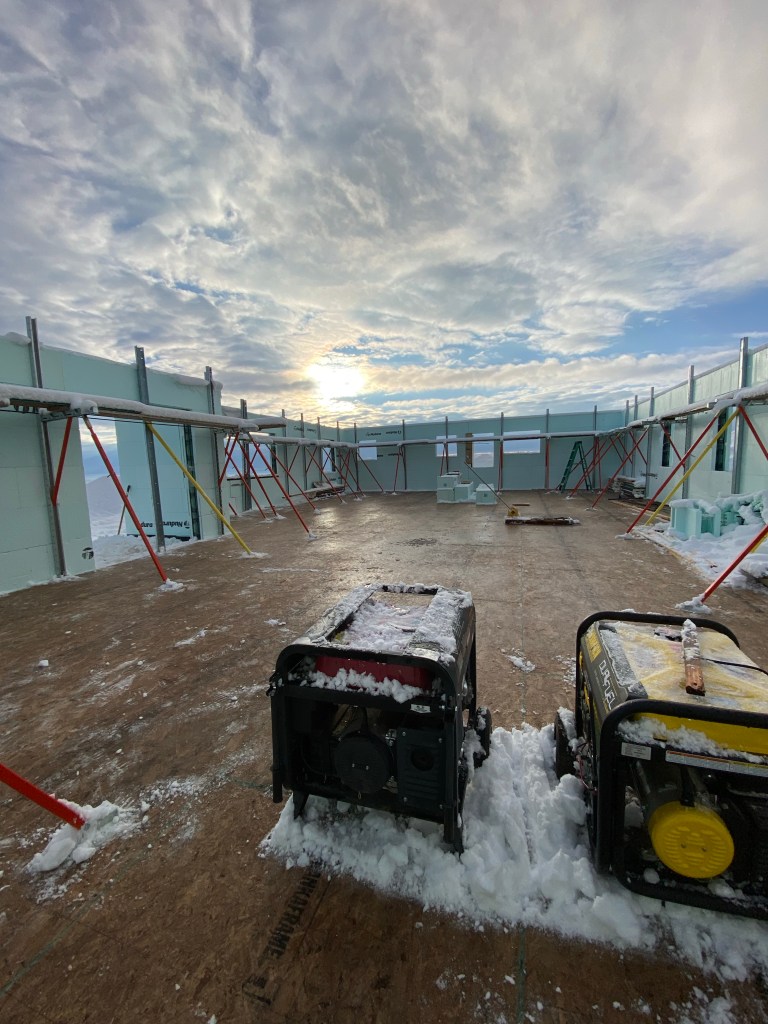 We are still trying to get dried in as quickly as possible. The next biggest step we’re waiting on is getting our walls poured; this will complete the ICF portion of the build. Once poured and set, we can have our subcontractor crew come out and place trusses. Then it’s a roof, windows and doors. Sounds simple, but it’s a lot of time and labor — and working with the elements — to accomplish.
