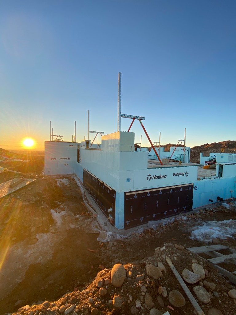 Two concrete pours later, and our foundation was done, subfloors installed, and the exterior walls began to go up. French drains were placed, backfill completed, penetrations and beginnings of electric and plumbing were installed. This was all despite freezing temperatures and lots of moisture.